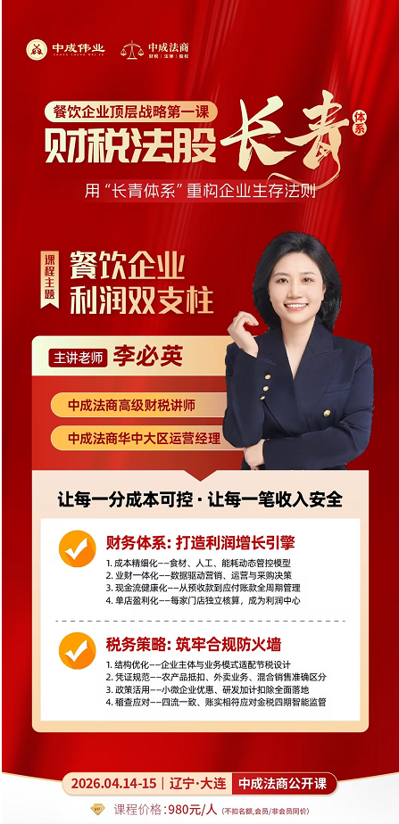 中成伟业第5期酒店餐饮《企业财税法股·长青体系》