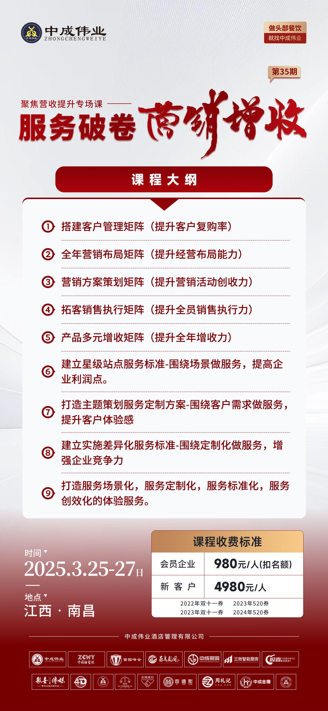 中成伟业 第35期酒店餐饮《服务破卷·营销增收》聚焦营收提升专场课