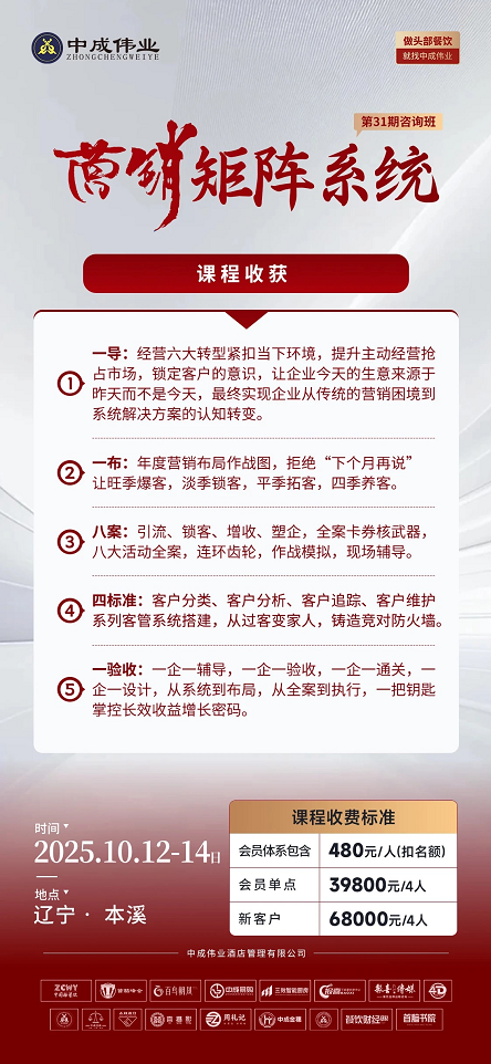 中成伟业第31期酒店餐饮《营销矩阵系统》咨询班