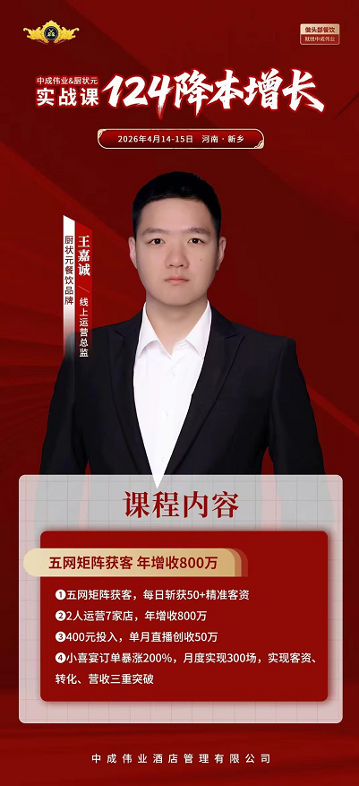这套124降本增长打法,对中餐宴会未来两年盈利破局借鉴极强,能参加务必到场